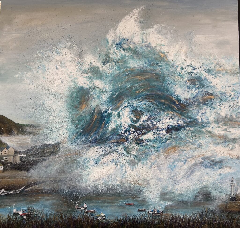 ‘The coming’ is inspired by the beautiful views of the magnificent sea, the unending sky and the busy harbour of Mevagissey from Polkhirt Hill. In this painting I wanted to convey the sheer energy and power of the sea, it’s dramatically beautiful and volatile nature. A deeper messsge lies beneath though regarding climate change and … Read more